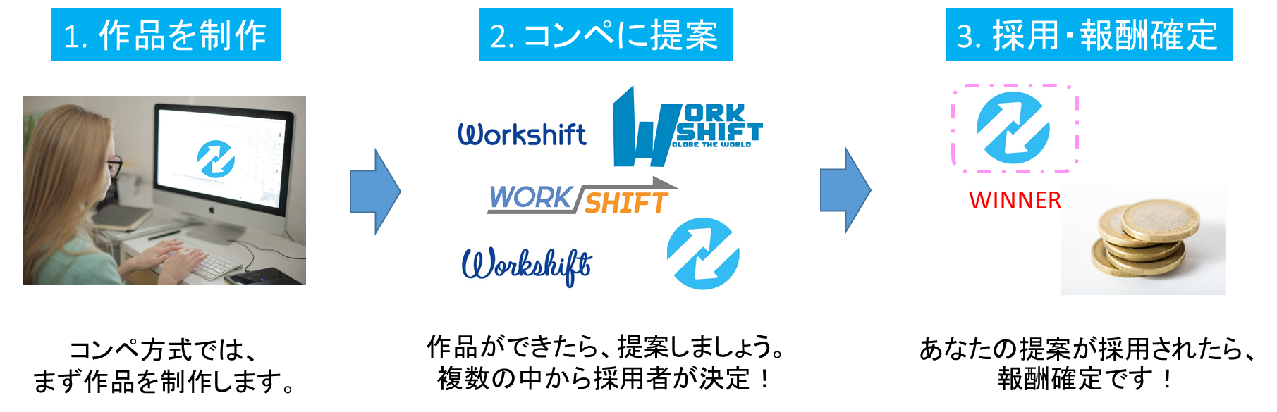 「コンペ方式」は名前の通り、クライアントの依頼に対して直接仕事を行います。