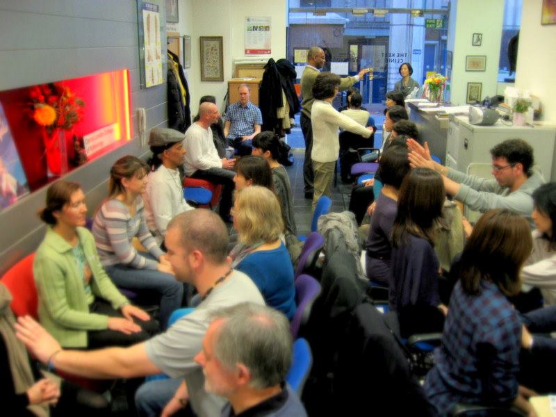 コミュニケーションが取れるだけの英語力は身に付けていますので、英国の至るところで写真のような補完医療セラピーやレイキのワークショップを開催していました。