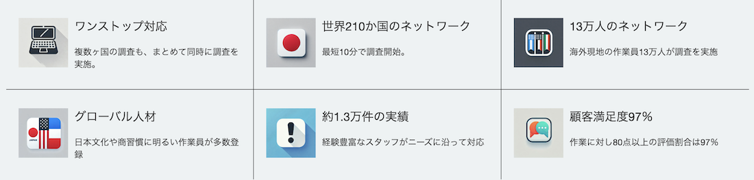 - 全世界210ヶ国、130,000人以上のネットワークを活用し海外市場調査を依頼