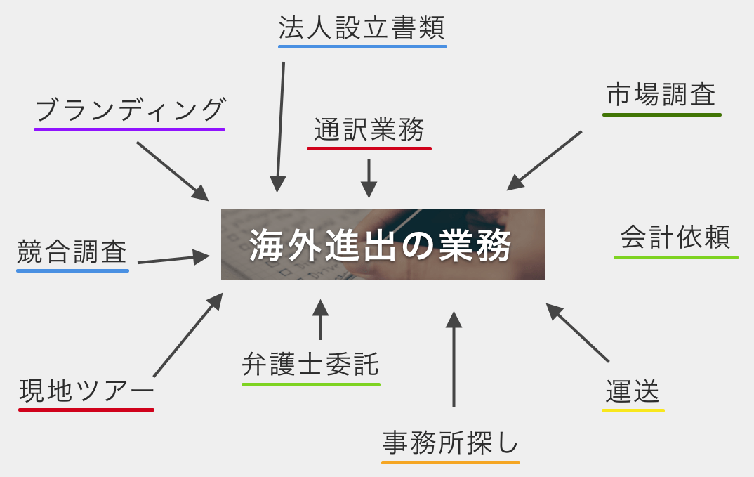 今回は海外進出に関してお悩みをお持ちの企業の方へサポートをいたします。