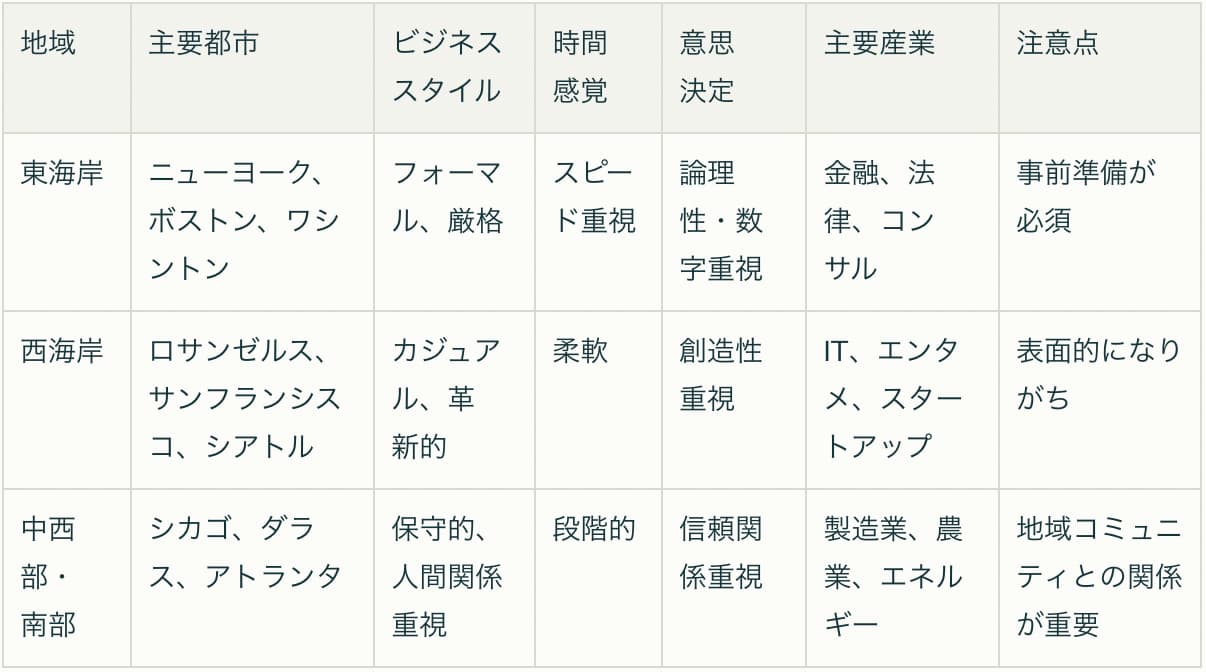 アメリカは広大な国土を持ち、地域によってビジネス環境が大きく異なります。これらの違いを理解することは、効果的なアメリカ調査と成功する進出戦略の策定に不可欠です。