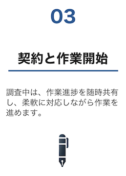 A. 調査の詳細をお伺いしたうえで、お見積りをご提示いたします。登録している調査員に直接ご依頼いただけるため、一般的な調査会社と比較して中間コストを軽減することが可能です。