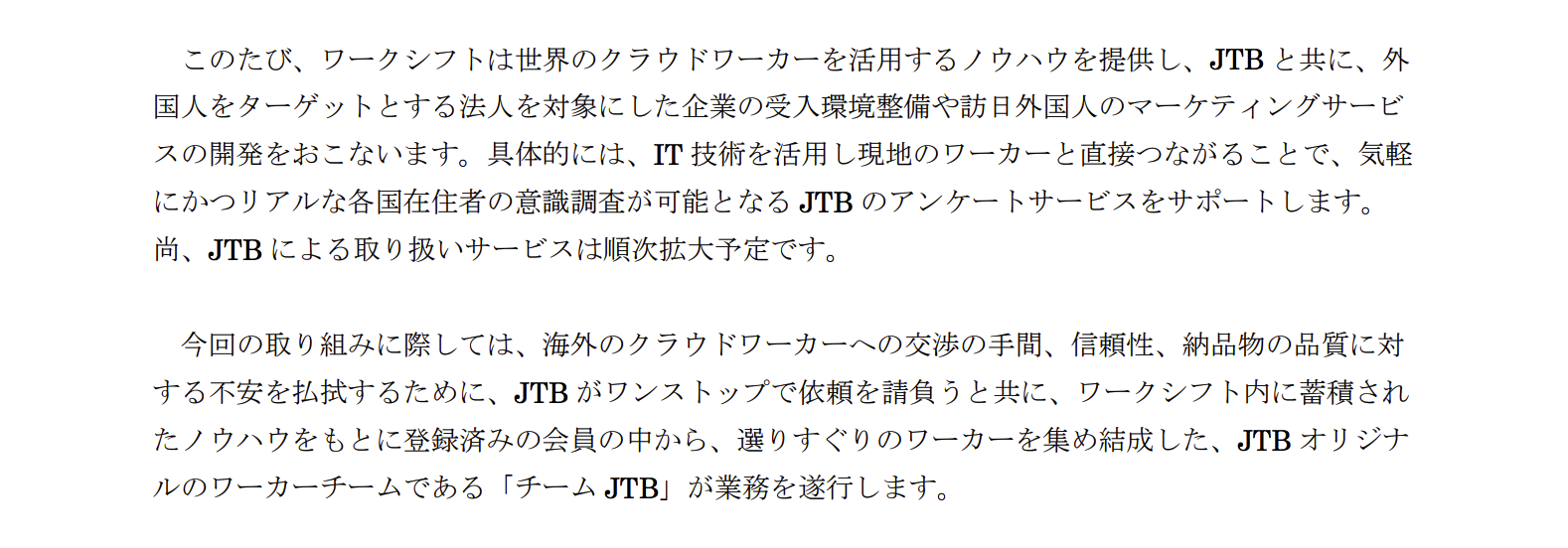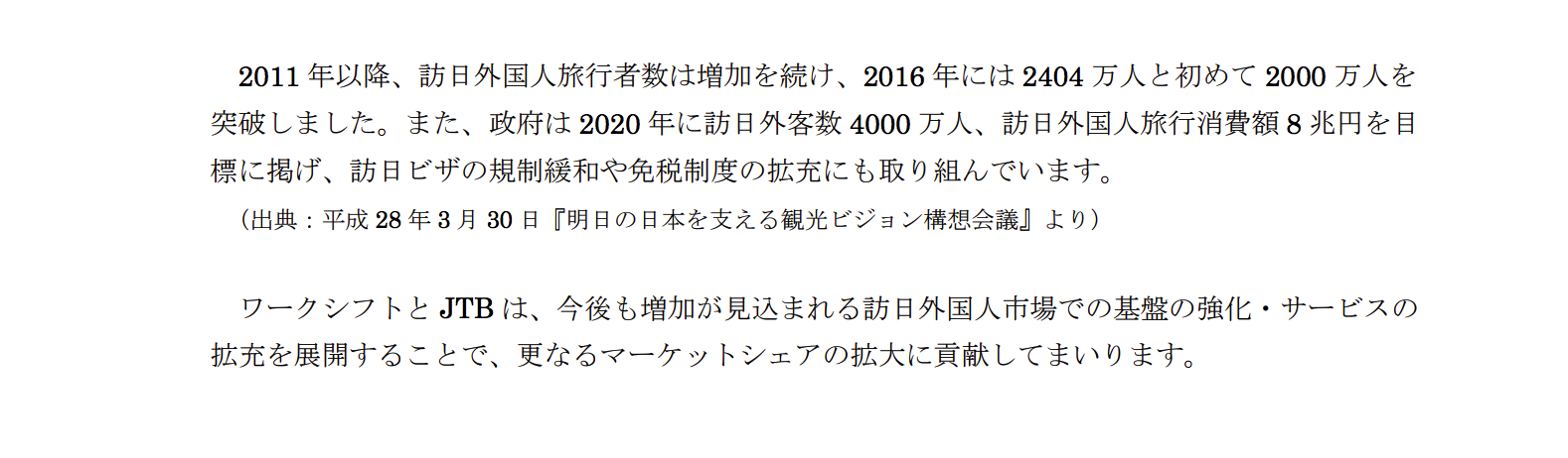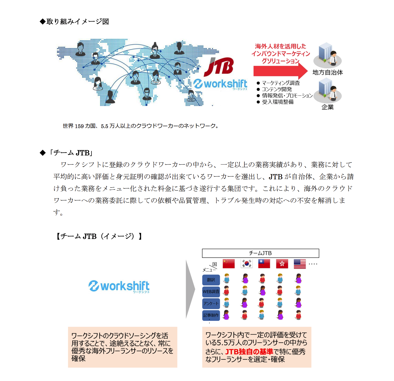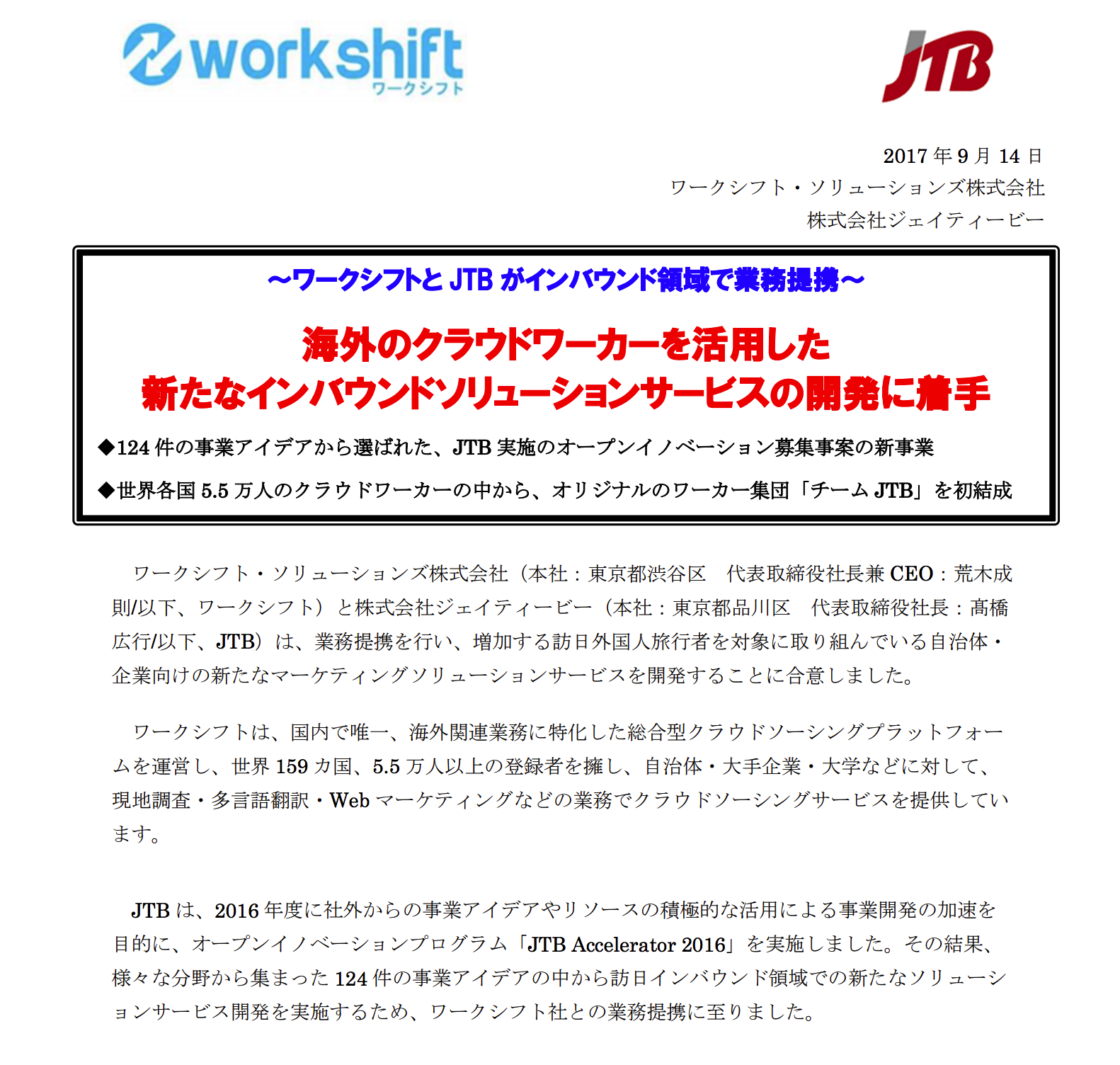 プレスリリース | PRESS RELEASE トップページ > プレスルーム > 2017年09月14日 ワークシフトとJTBがインバウンド領域で業務提携しました - 2017年09月14日 - 詳細PDFはこちら
